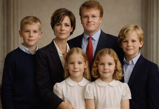 For the first iteration, it gave me the adults, two girls with long blonde hair in frilly white dresses, and two boys, much older and bigger than the girls. So, I started the iterative process by telling it a boy was missing.