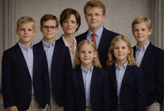On the fifth iteration, it gave me three boys (around the same age) and the adults in the back row, literally melting into each other. The two girls in front were still smaller, but now they were inexplicably dressed like the boys.