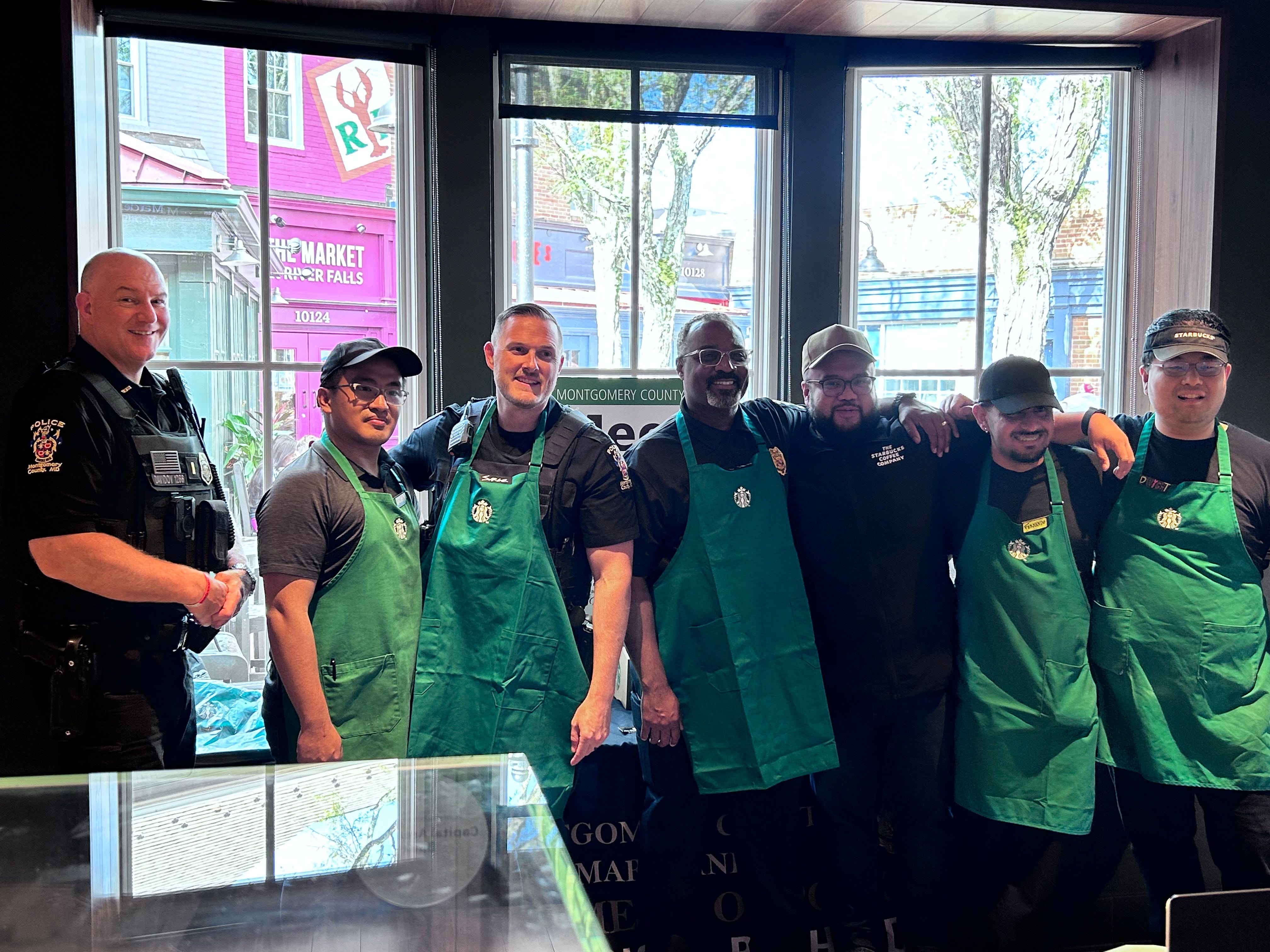 Montgomery County Police Department District 2 hosted another Coffee with a Cop event today — this time at Starbucks in Potomac. D2 holds these throughout the year at coffee shops, ice-cream parlors, and other relaxed “third spaces” where people gather.